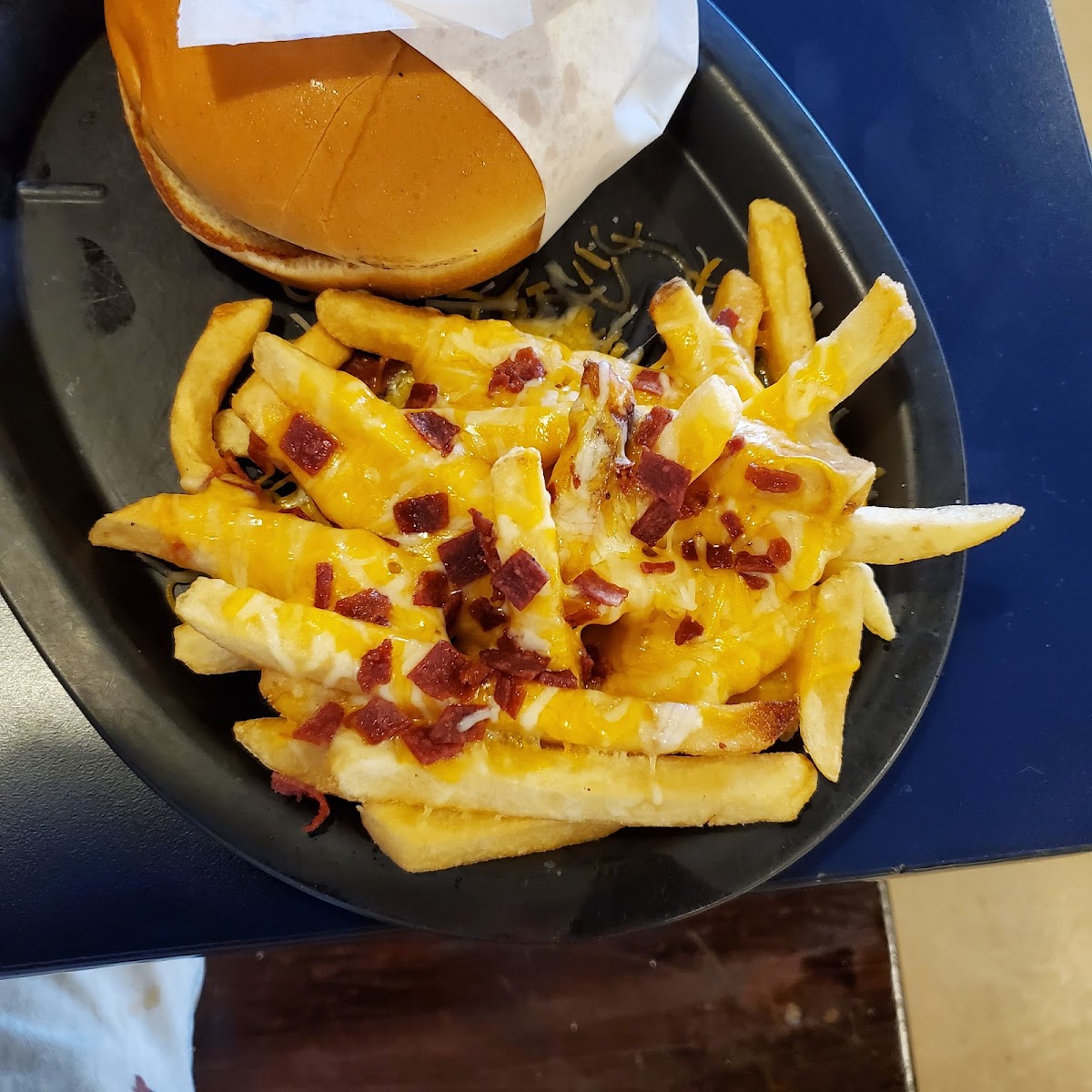So a friend of mine took me here since I had never heard of it, boy I am glad he did. I had the cheeseburger with bacon and cheese fries. So the hamburgers are made fresh, no frozen patties or flash frying here. It was wonderful. The bacon cheese fries were made with real cheese and bacon, no pour on cheese and bacon bits here! I'd of liked a little more bacon but hey, I love bacon! Plenty of food, I did not leave hungry. The service was very good, of course we were the only ones here so I got to take a lot of shots. I definitely recommend coming here, in fact I will go out of my way to now that I know about it. One of the locals best kept secrets.