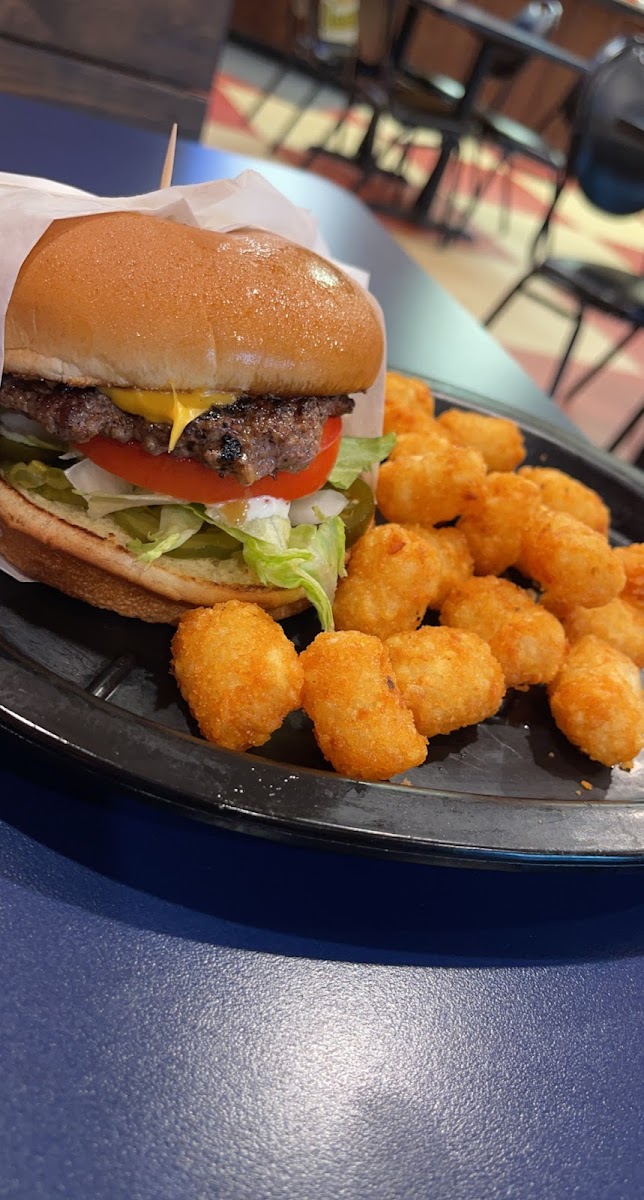 Charming spot for a good bite. Food was hot and fresh. The spicy chicken sandwich had a good fire to it and was a real chicken breast, not some choped and formed mystery meat. Tater tots hit the spot, and were super crunchy. Service counter was friendly and food came out reasonably quick. Looking forward to trying the burger next time I'm in the area.