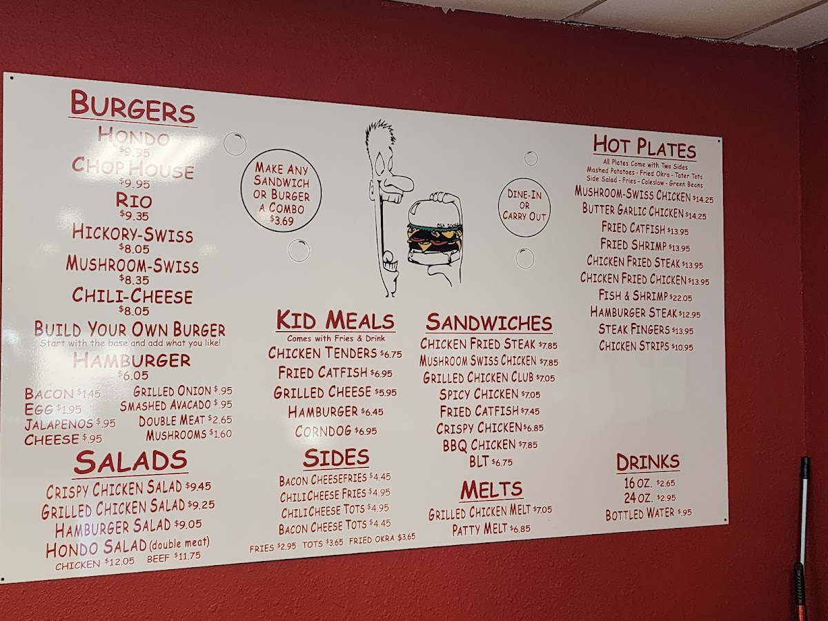 The menu at Hondo & Shorty's offers a straightforward selection of classic American fare with a focus on hearty, comforting dishes. You'll find a variety of burgers and sandwiches, each crafted with fresh ingredients and served in a relaxed, small-town setting. Whether you're stopping by for a casual lunch or an easy dinner, the menu suits those looking for satisfying flavors without fuss.